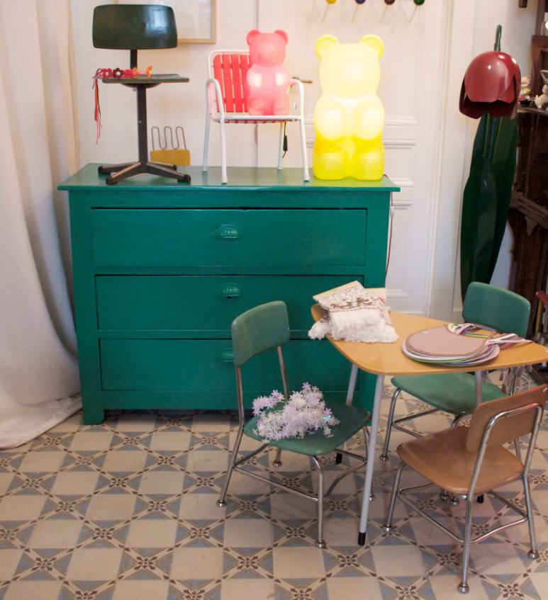 LPF: C’est pour les enfants mais aussi pour les adultes qui sont restés enfants! Lorsqu’on entre dans un univers d’enfants, on dédramatise l’acte d’achat. Souvent, on va acheter une commode pour son enfant, mais en réalité on l’achète pour soi! Et puis on est tous des enfants! Moi je viens d’un univers de collectionneurs. Et je collectionnais beaucoup moi-même ave le père de ma fille. Un collectionneur est une personne qui ne veut pas quitter le monde de l’enfance. On est finalement tous des enfants et c’est tant mieux! Il faut le rester! Parce que cela nous donne une ouverture et un certain regard sur les choses..