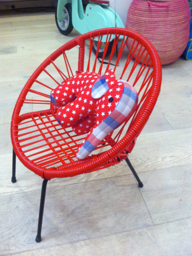 La chaise Tica Scoubidou de The Rocking Company c’est LA chaise par excellence. La chaise pour les petits qu’on adore et qui est parfaite. C’est un coup de cœur déco total. Grâce à sa taille mini, son dossier de 46 cm, et sa hauteur d’assise (22 cm), elle est parfaitement adaptée à vos haricots. Elle est composée de métal et de scoubidous tressé. Elle est hyper solide, stable mais aussi confortable avec ses adorables accoudoirs tressés. Et figurez-vous que même les grands peuvent y mettre leurs fesses sans pour autant déformer sa forme !