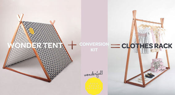 Sacrée découverte que voilà: SGH – Such Great Heighs est un shop australien  de produits pour enfants qui on lancé une invention assez géniale: un meuble double-emploi! Une tente trop belle qui se transforme aussi en jolie penderie! Les tissus sont vraiment sympas et la tringle hyper facile à imaginer dans une chambre (pour enfants ou adulte!).