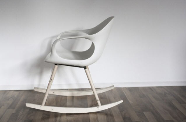 Neuland Studio est un cabinet de design allemand composé de Michael Gelmache et Eva Paster. Ils sont réalisé ce rocking chair qui réinterprete de manière moderne la traditionelle rocking chair de nos ailleuls. la coque est large, réalisée en polyuréthane. Le modèle classique repose sur une structure d’acier laquée et celui qui permet la bascule repose sur une structure en bois. La chaise à bascule est le prolongement de la célèbre chaise Elephant développée par Kristalia qui avait gagné en 2012 le prix Interior Innovation Award dans la section « best of the best ».
