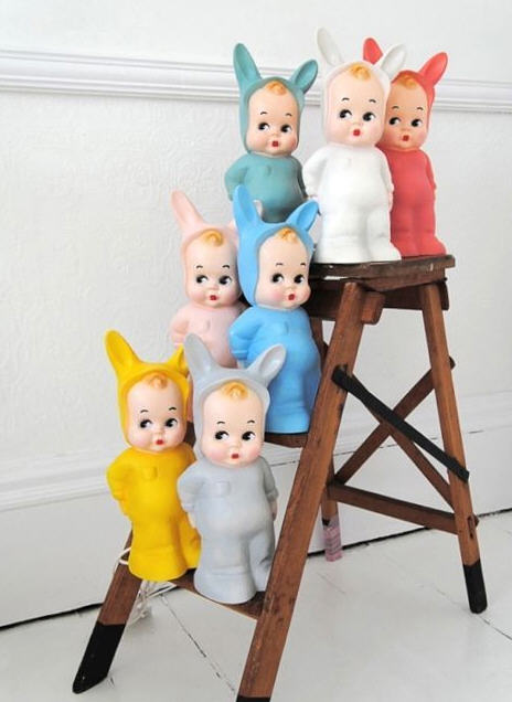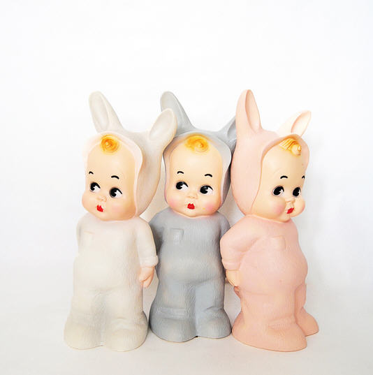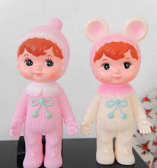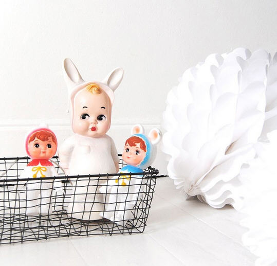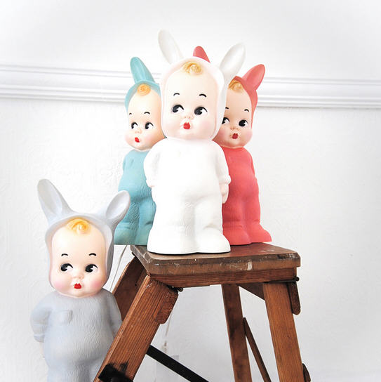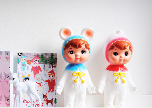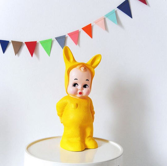 Ahhh le monde de Lapin & Me! Un univers bien à lui, féérique et intemporel. Dans leur monde il y a les fameuses veilleuses rétros en forme de poupée, inspirées d’un jouet des années 40 trouvé sur un marché aux puces à New York. Et puis il y a la poupée rétro Snow Baby. Les veilleuses sont peintes à la main et sont en résine de plastique résistante à la chaleur. On les voit partout et décorent les chambres de nombreux haricots partout, partout ! ^_^