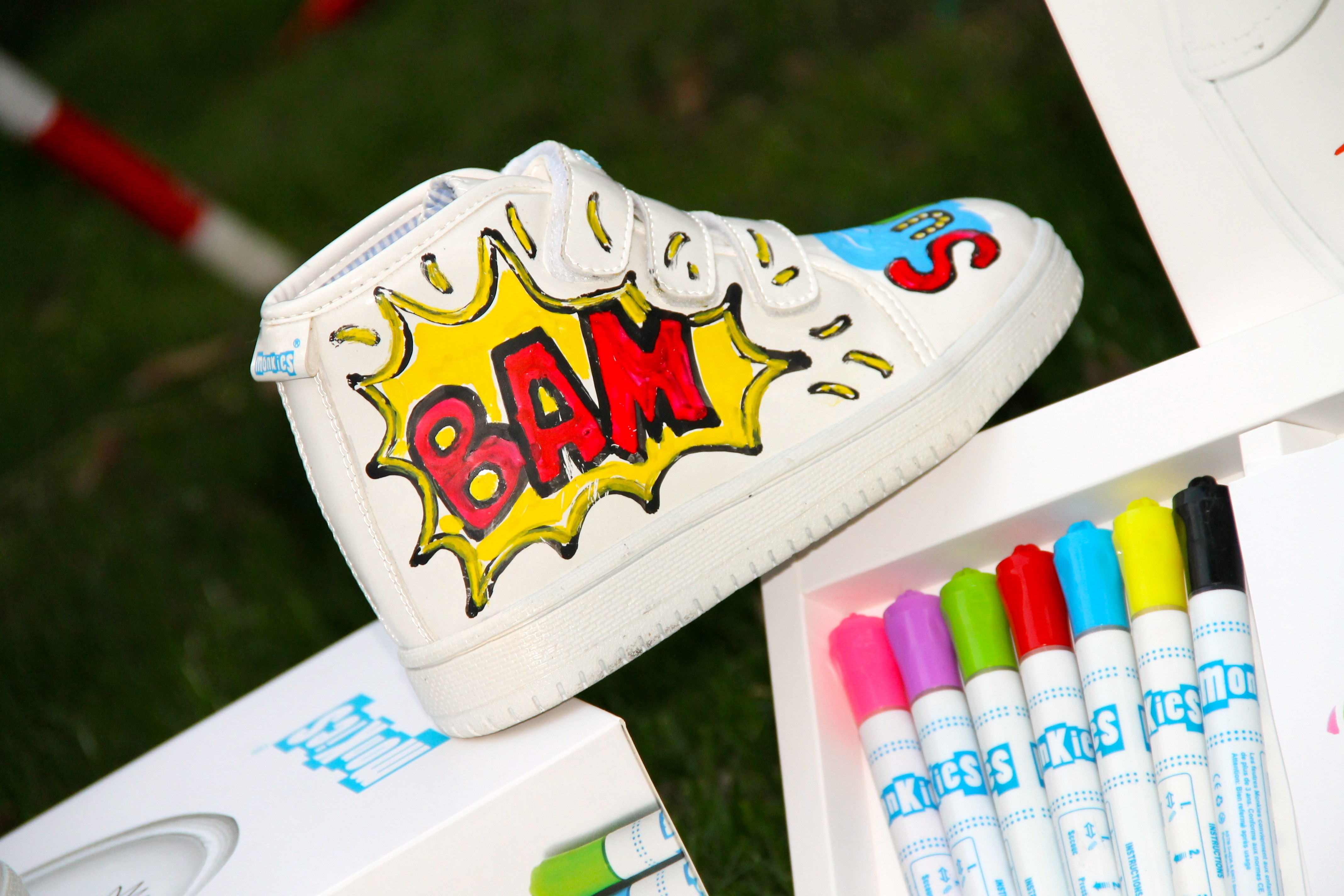 On en rêvait, ils l’ont fait ! La » Monkies Box » ou comment l’interdit devient possible ! Vous et vos haricots vont adorer les baskets customisables : on colorie, on dessine , on efface et on recommence! Chaque box (59 euros) comprend: 1 paire de Monkies, 7 feutres magiques, 1 éponge, 1 lookbook.