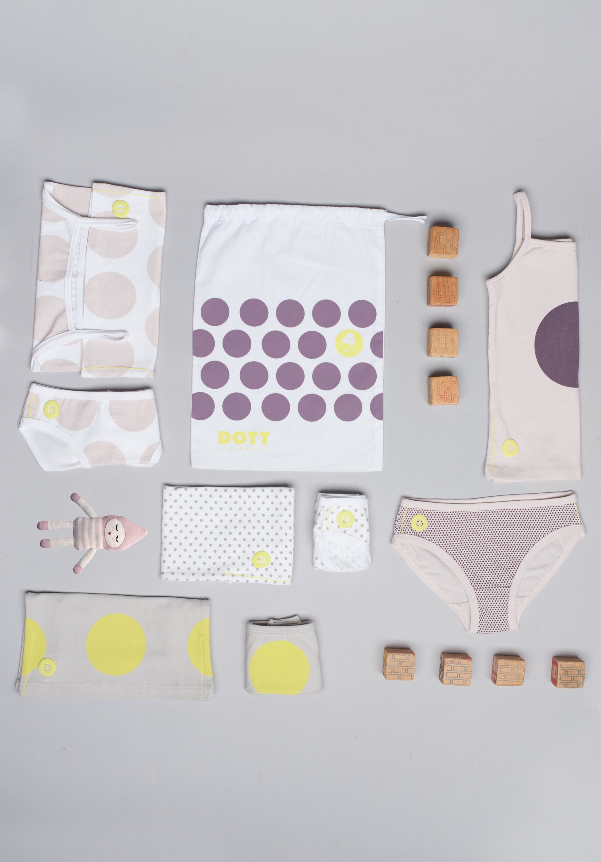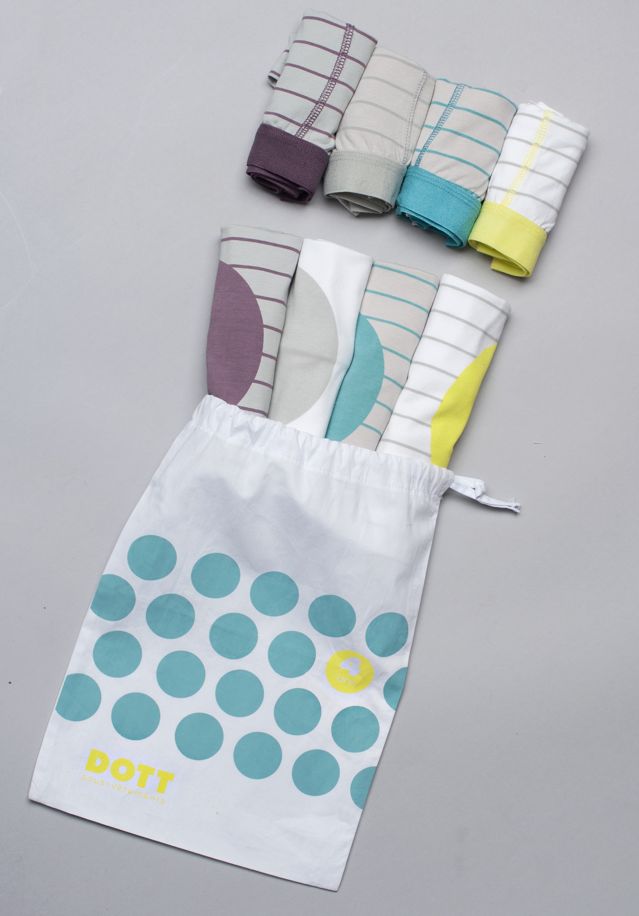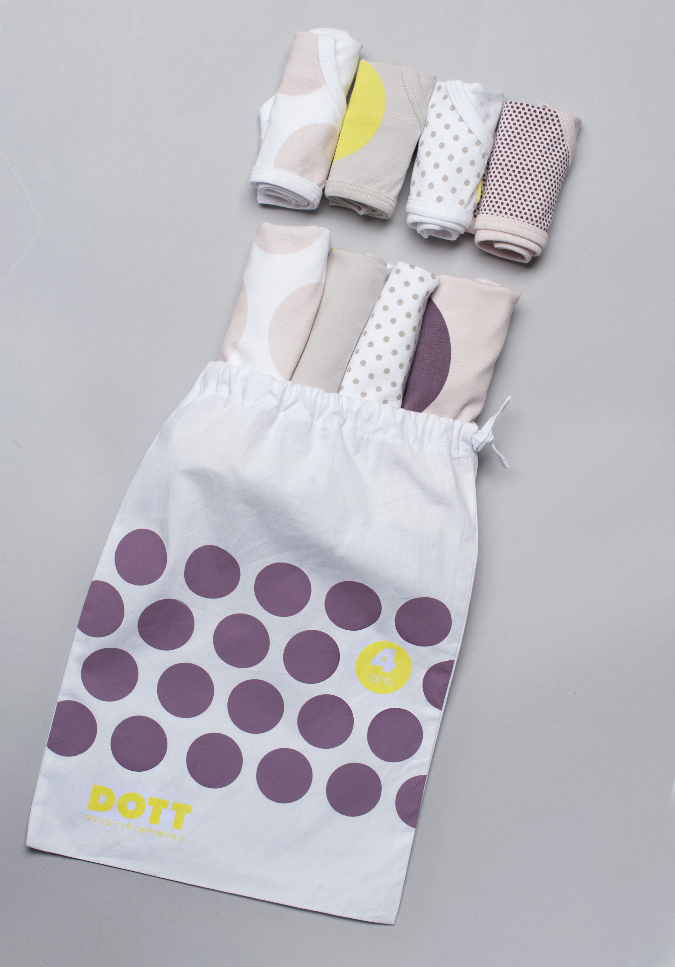 Grands passionnés de design, un œil pour le détail et un penchant pour le style, le confort et la qualité, DOTT fait des sous-vêtements pour haricots qui plaisent. Ils sont confortables, simples et chics ! Les set de sous-vêtements de la marque comprennent 4 petites culottes (ou caleçon) et 4 brassières. Tout est composé de coton très doux et le tout est emballé dans un sac en coton très mignon !