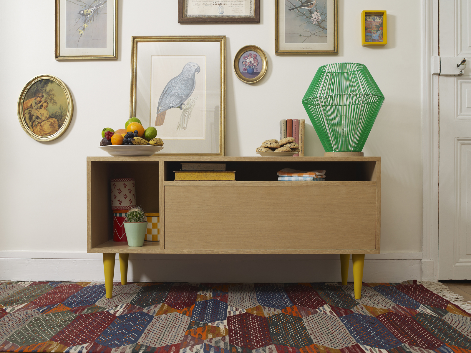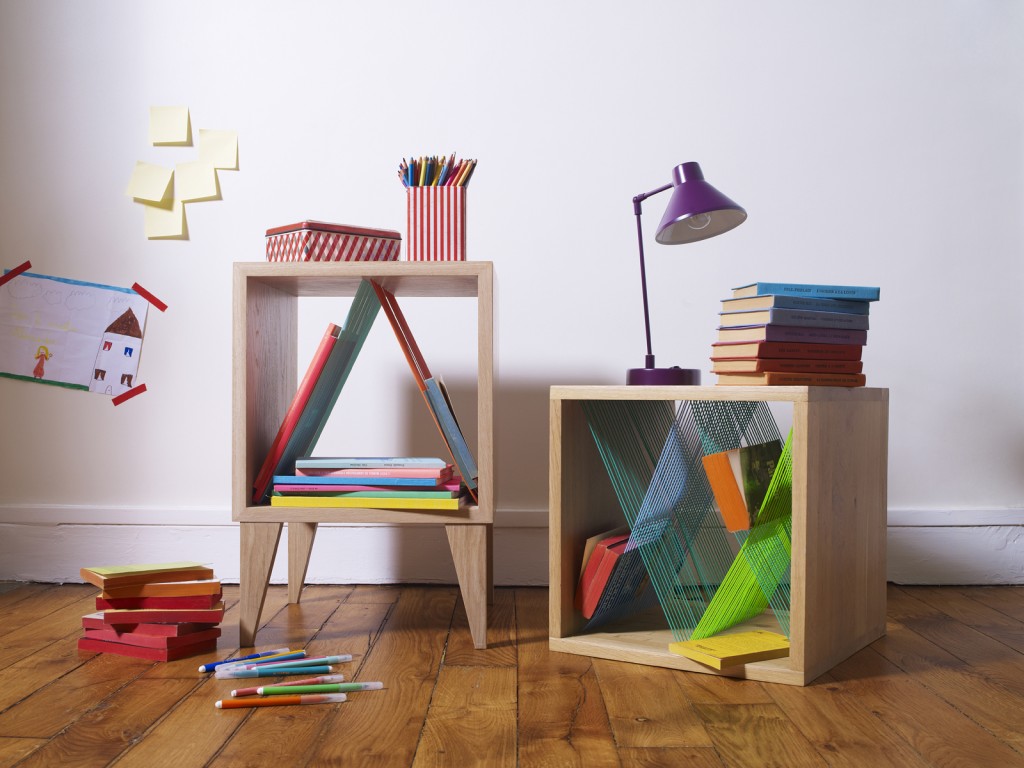 Découverte déco de la semaine: Elsa Randé et ses meubles scoubidou! Après quelques expériences dans le milieu du luxe, Elsa Randé se lance en 2012 dans l’aventure d’une collection de meubles. Et c’est un pari réussi ! Elle opte pour l’utilisation ludique du fil de scoubidou comme élément principal de ses meubles qu’elle associe avec des matériaux de grande qualité tels que le chêne massif. Les meubles allient parfaitement l’esthétique et l’utile et se déclinent en différentes couleurs vives. Les fils de scoubidou et le bois se marient grâce à une technique inédite : la couture sur bois. Ces meubles sont à utiliser partout, autant dans le monde des adultes que des haricots. On applaudit !