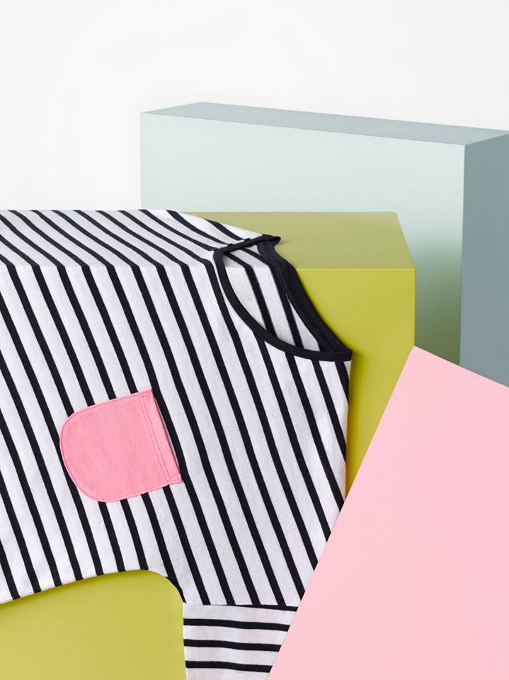 Bon, ça, c’était pour la petite histoire de HAY. Mais nous, ici, on s’intéresse à leur collaboration avec COS. Et c’est justement sur base du jeu de blocs que se joue la collaboration entre les deux marques. Le résultat est une collection avec des lignes simples et pures, typiques de COS, mélangée à des détails colorés, géométriques et pops de HAY. Cela en fait des basiques parfaits pour les haricots avec, à chaque fois, un petit détail et un clin d’œil qui fait toute la différence.