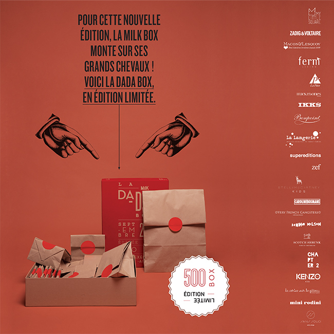 Voici la DADABOX, la nouvelle BOX de MilK en édition limitée ! Cette BOX contient 21 produits que 21 marques de mode et décoration ont exclusivement créé pour MilK. La DADABOX conjugue l’utile à l’absurde, l’humour à l’agréable…
