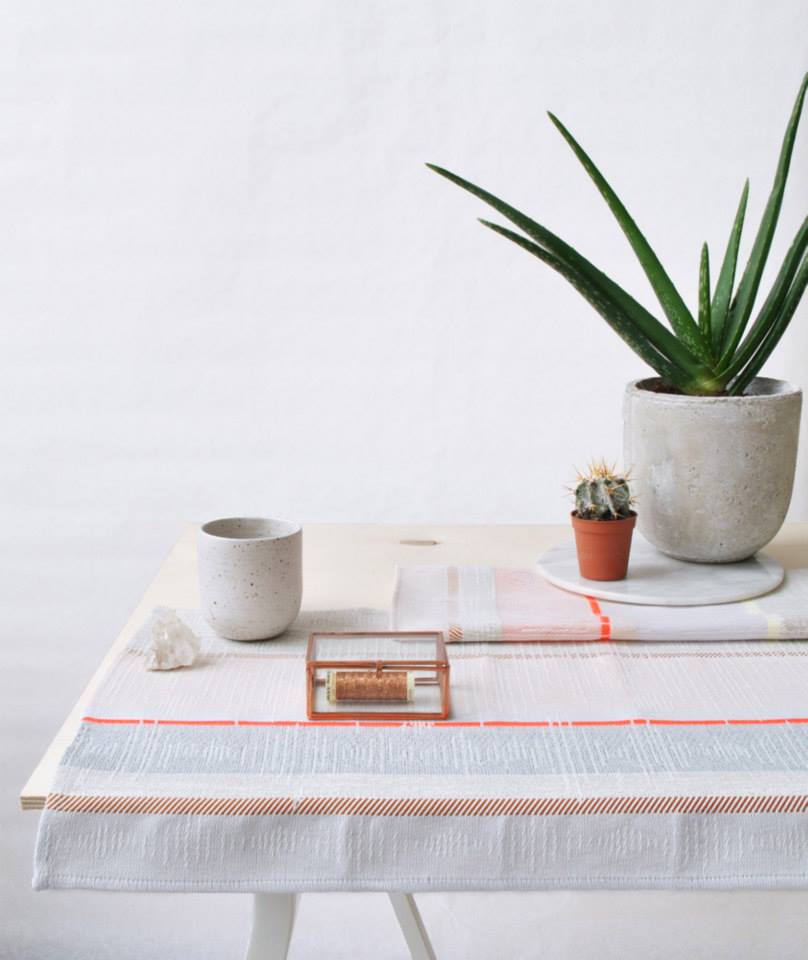 Mae Engelgeer est une designer textile basée aux Pays-Bas, à Amsterdam. Son studio est situé en plein centre-ville avec une vue imprenable sur les canaux. C’est dans ce studio qu’elle crée ses collections de tapis et de textiles. Les productions de tissus ont lieu au TextileLab à Tilburg. Mae aime créer des produits accrocheurs et colorés pour nos intérieurs. Parmi ces pièces, il y a des nappes en coton au tissage irrégulier, entrecoupé de lignes orange fluo et cuivrées, des motifs imitant les graviers et le marbre, des couvertures au tricotage unique, du linge de maison en mérinos et mohair et des tapis s’inspirant de l’esthétique berbere et boucherouite. C’est parfait pour le salon, la chambre à coucher ou celles des haricots…