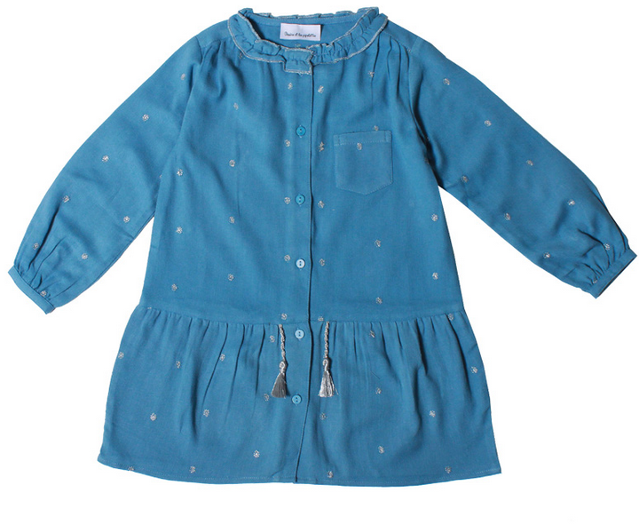 Chloé de Bailliencourt clearly remembers what she liked and what she hated as a child. To her liking were swirling skirts and endless play on the beaches of the Basque coast as well as moments spent with her mother hunting for an unusual object or unique toy. True treasure hunts these searches gave her a taste for weathered objects, things that have lived, and particular materials. Chloe has always loved drawing and making clothes, it’s her passion, and a second nature. Although this passion ran in her family for generations, as a young child she could not imagine that one day she would create her own fashion label. Yet later on she took on the challenge and enrolled in the Superior School of Applied Arts in Paris and then Duperré Saint Martin’s School of London. Here she learnt a commitment to excellence and a technical mastery that gave substance to her instincts. In 2011 Arsène et les Pipelettes opened its first boutique in the Basque country in the city of Bayonne. Today, the brand has over 100 outlets worldwide. In the image of its creator, Arsène et les Pipelettes promotes a contagious spirit of good humor and charming insolence. The brand revolves around the world of a shy little boy playing tough guy and a number of very talkative little girls who like swirling skirts. Easy to summarise, the brand has amazing patinated colors, refined fabrics (cashmere, coton , lace etc) and a great sense of humour: T-shirts printed « smug », « tough guy, » or « I’m a chatterbox » …And finally, the brand is a 100% French creation and its manufacturing is European.