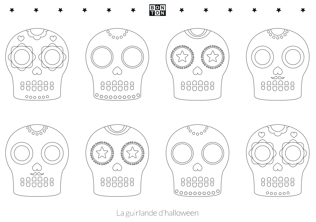 Bonton nous propose de faire notre guirlande mexicaine pour Halloween vous-même! Nous vos proposons de nous envoyer vos guirlandes « Dia De Los Muertos » une fois terminées pour les publier! Il suffit de les imprimer via ce lien lien et de les colorier! Bon amusement!