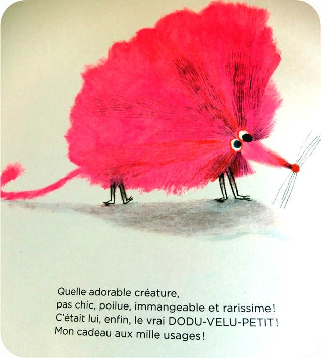 Le dodu, selon l’auteur, es “un personnage absurde, une espèce de marmotte fluorescente ou de caniche électrocuté qui incarne la puissance de l’imagination” . Dans ce livre, il est question de la fragilité de l’enfance, de l’estime de soi. De la volonté de se dépasser pour grandir et s’affranchir. Il est aussi question de légèreté : dans les détails : la vapeur du thé, la neige délicate, le pelage doudou du Dodu…A partir de 3 ans.