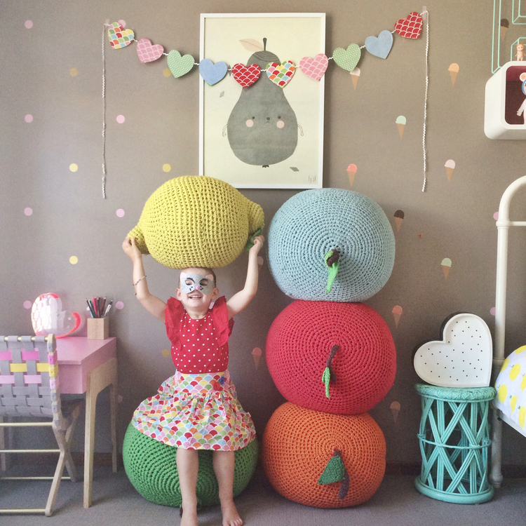 The wonderful Sydney based childrenswear and accessories label Oobi Baby! We are loving the adorable Fruiti Ottomans . The ottomans come in five different colors and are pefect for adding a unique, yet useful piece in your child’s bedroom!