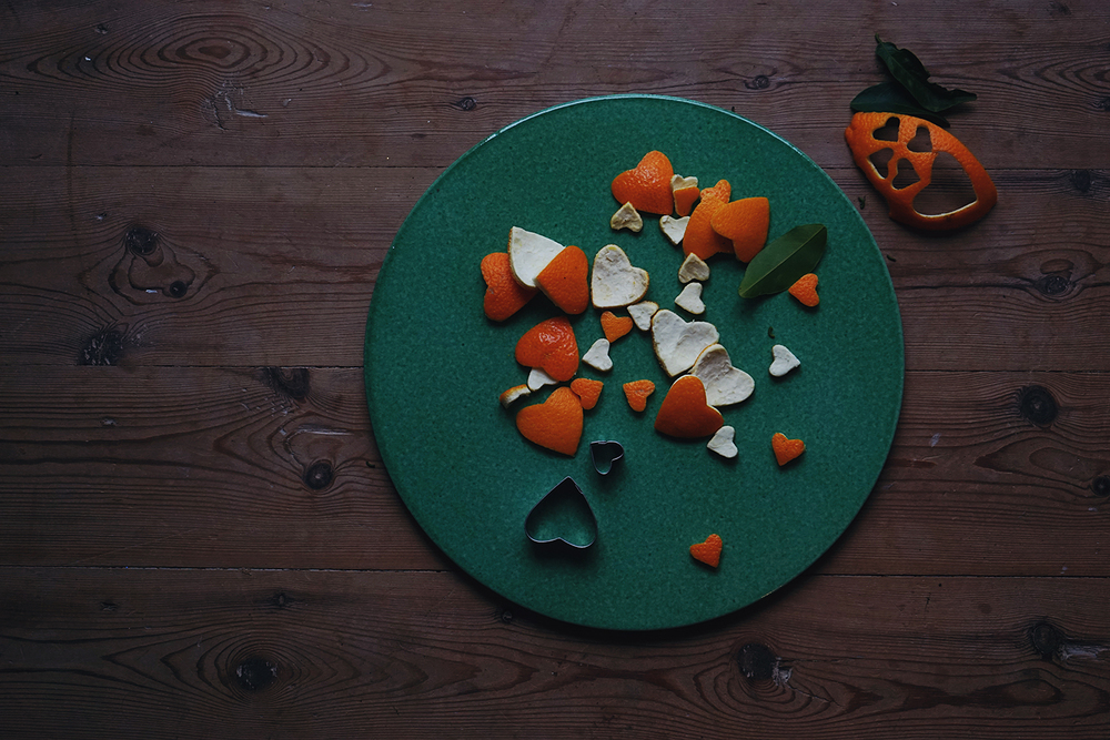 -On a hard surface, puch out shapes with metal cookie cutters – I used 2 heart shape in different sizes.