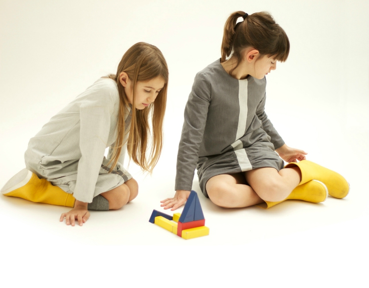 Motoreta means a small motorcycle and in Spain it was a very special model of bike that most kids from the 80’s had at home. But Motoreta is also a cool brand of kidswear from Seville with tons of character and charm. Their designs have contemporary and sophisticated cuts and exquisite lines, a successful combination of tradition and modernity.The new Motoreta’s AW’15 collection is all about geometrical shapes, lines and basic forms. This collection is full of references to artists from the Bauhaus: Kandinsky, Klee, Batz… Art and Architecture.You’ll find clothes with beautiful silhouettes, fabulous fabrics and basic colours (grey, black, off white, yellow, a bit of blue and green). All garments are made 100% in Andalusia (Spain), following their concept: “think global / produce local”.The creative duo behind this kid’s fashion label, Cristina López-Lago and Maria Llerena, creates gorgeous dresses for girls with plain colours and also geometric prints. The details (the collars, pockets or frills) and the well-designed structure make the difference.But Motoreta doesn’t leave the little boys out either. Their shirts and unisex baggy pants are perfect for a stylish and urban-inspired look.The new high-quality kidswear collection features Bauhaus-inspired prints, small and large polka dots, squares and other geometrical prints.