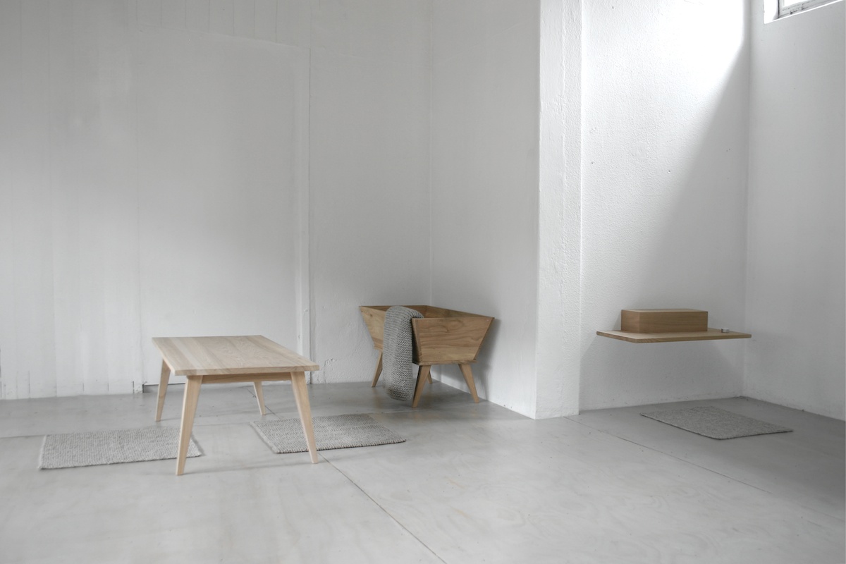 A room with just a … desk, table and/or wall altar. And a cradle, offering a sheltered place. The philosophy of Ground, a series of small furniture by Pruun. The furniture pieces together and as an individual all breath a sense of serenity and simplicity. Can you imagine having this amazing cradle as the perfect place for your new born?A beautiful concept with some timeless pieces of small furniture.