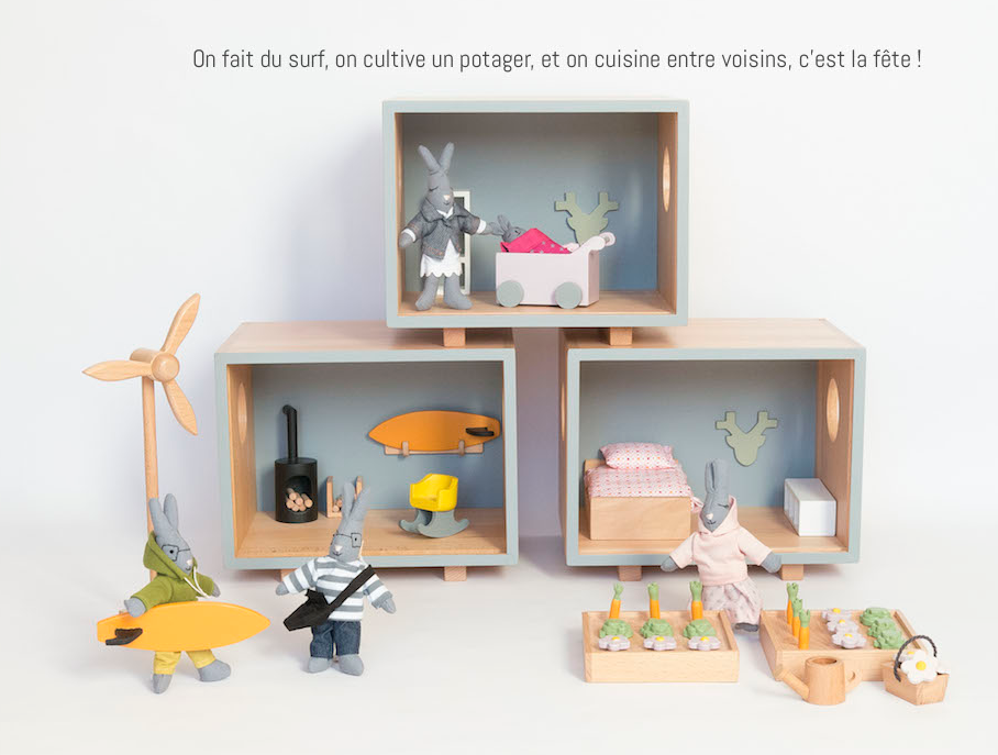 Ecological awareness is becoming more and more common in our daily life, we don’t want a polluted world for our kids. New generations must learn those concepts since childhood in order to take care of the planet from the beginning. Encore! has worked with this idea to create its ecological wooden toys. The French brand Encore is new and it has got a lot of success by showing something which is not very common. We are used to ecological toys like those cardboard toys, but anybody had thought about creating toys which promote respect for the environment. We love dollhouses and this kind of games so we consider the eco-friendly neighborhood of this brand is amazing. There are lots of elements that tell us about an eco-friendly lifestyle, like that little vegetable garden or the wind power system. The idea is that kids can learn about this matter while they are playing. Those toys are made of wood and fabrics, with natural and recyclable materials. All of them show a timeless and modern style. They are simple but all of them have plenty of details, this is something really exciting for kids because they will find lettuces in the vegetable garden or the surf board to play with their characters. We love the idea of toys which are not only produced without damaging the planet but are also a way to teach kids about taking care of it. We are sure that this kind of projects will help them to look after the planet in a future. Let’s play!