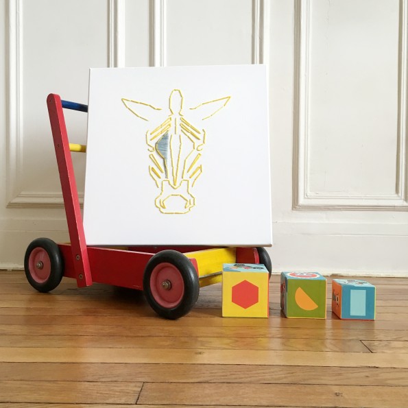 Un Zèbre dans ma chambre est une toute jeune marque qui propose des tableaux personnalisés pour les enfants, mais qui plairont aussi aux adultes. Ils sont réalisés entièrement à la main et habillent les murs de manière graphique, subtile, et poétique. Les toiles sont brodées de laine et représentent de animaux avec une chouette petite touche pop! Que l’on soit ours, lapin, zèbre, panda, zèbre ou renard, le résultat est doux, minimaliste et sobre, très loin des dessins typiques et clichés que l’on retrouve habituellement dans les rayons des magasins de décoration pour enfants. Perrine est graphiste de formation, elle se lance dans ce projet un peu par hasard alors qu’elle est visuel merchandiser. C’est donc tout naturellement qu’elle découvre les plaisirs liés à la décoration et à la mise en scène des espaces. Les toiles sont disponibles tel quel mais sont aussi personnalisables: on choisit alors la toile, l’animal, les couleurs et un prénom. Le résultat est bluffant et atypique, la décoration murale se fait douce et animale. Les toiles prennent vie dans chaque espace et apportent une touche unique aux chambres des enfants !