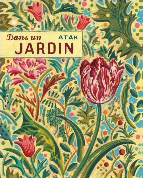 « Dans le silence, le jardin s’éveille. » Ainsi s’ouvre le nouvel album d’Atak, comme une invitation à se promener dans un jardin, havre de paix peuplé d’animaux et de drôles de personnages. Pendant que les plus petits, bercés par la douceur du texte, découvriront avec émerveillement les trésors qui se cachent derrière une quarantaine de volets à soulever, les plus grands, eux, savoureront la quiétude des lieux et les nombreux clins d’oeil que l’artiste a glissés dans ces images hautes en couleur. Avec ses somptueuses illustrations pleines pages à la Douanier Rousseau, Atak rend hommage au jardin, lieu magique et ressourçant, peuplé ici d’êtres surprenants, on y découvre des personnages sans liens apparents, issus des arts cinématographiques, littéraires ou picturaux. Tintin et Milou contemplent le buste d’un nu féminin, Barbapapa se met au vert avec Mickey et quelques personnages du Déjeuner sur l’herbe d’Edouard Manet. Ce méli-mélo d’individus et de situations provoque une étincelle de surréalisme loufoque et décalé, dont l’effet est renforcé par le langage poétique utilisé. Petits et grands feront le plein d’images luxuriantes et généreuses, où la flore et la faune sont à l’honneur. L’auteur allemand nous offre – dans un très bel écrin – un jardin d’Eden contemporain !