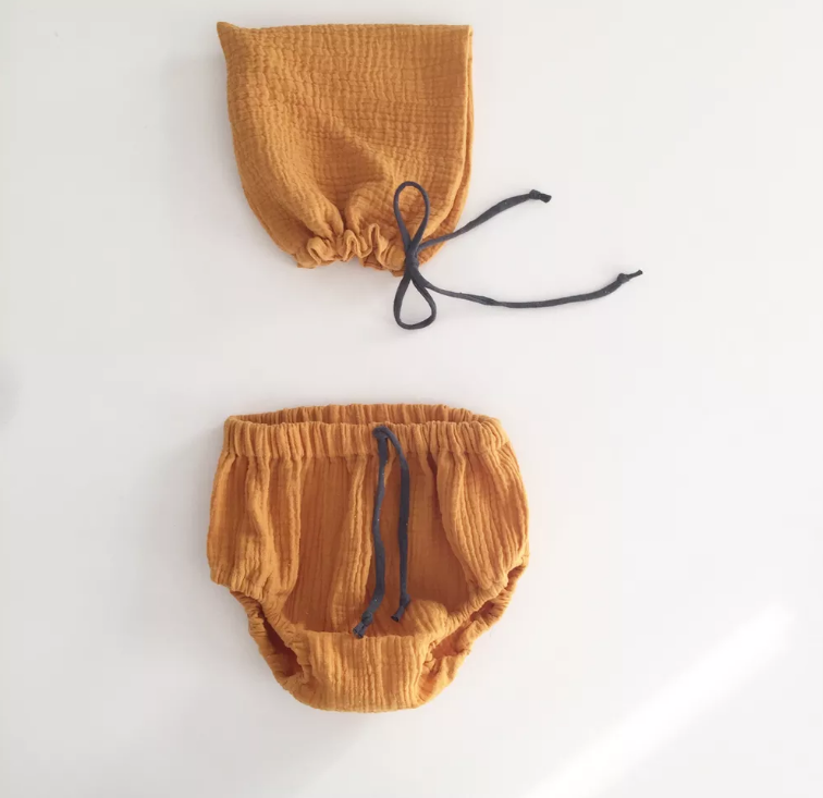 Robe manches longues 63€, robe manches courtes 53€, robe manches longues 63€, robe manches courtes 53€, jupe 33€, chemise manches longues 43€, col « clown » 23€, chemise sans manche €43, bloomer 33€, béguin 33€, lange 73€ .En vente sur leur site liilu.bigcartel.com. À suivre aussi sur leur compte Instagram.