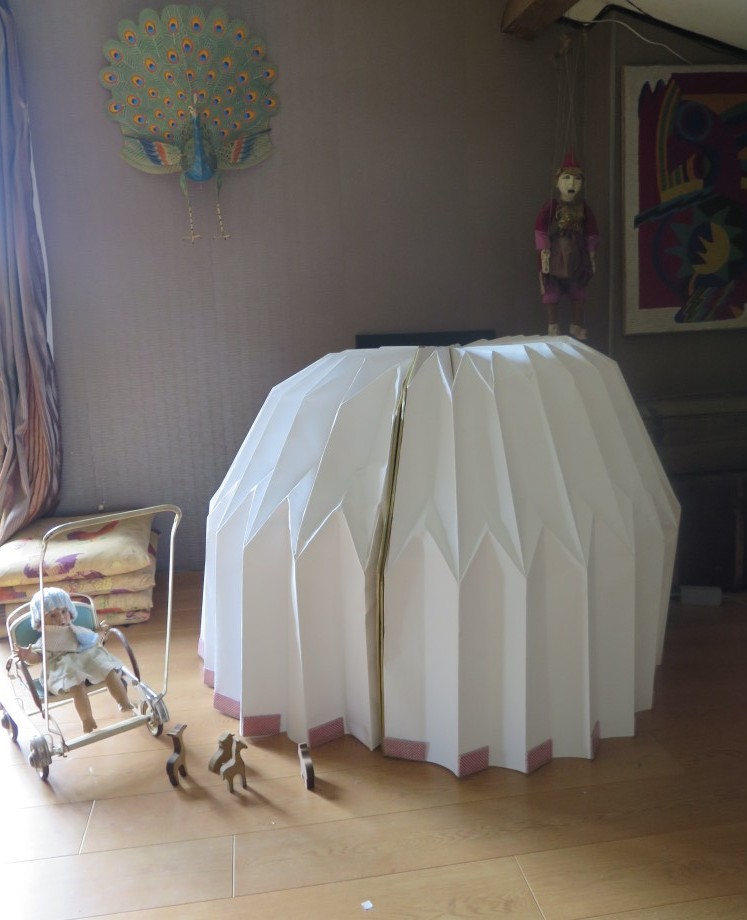 We had mentioend this brand before : Origanids are pop up playhouses to unfold our imagination… and we just had a major crush on them! Fascinated by modular micro-architectures, Sarah Osseland created the Origanids, foldable play houses made in recycled materials, that can be bought on her website needahouse.fr. Sarah trained as an architect, something that reflects into her inspiring website, full of tips, ideas and activities to introduce children to architecture. Origanids are not mini versions of classical houses with a roff and a chimney, but a real invitation for children to develop and create a world more adapted to their dreams. The shapes and materials are dreamlike and amazingly poetic, a beautiful way to embark young kids into a gorgeous journey of infinite possibilities.