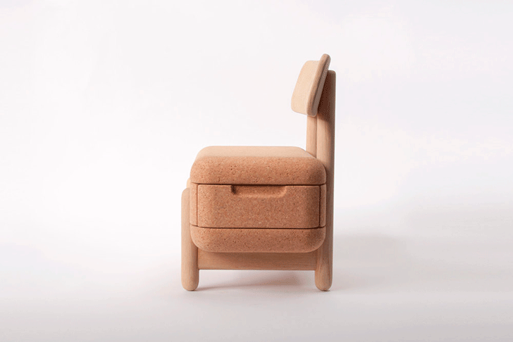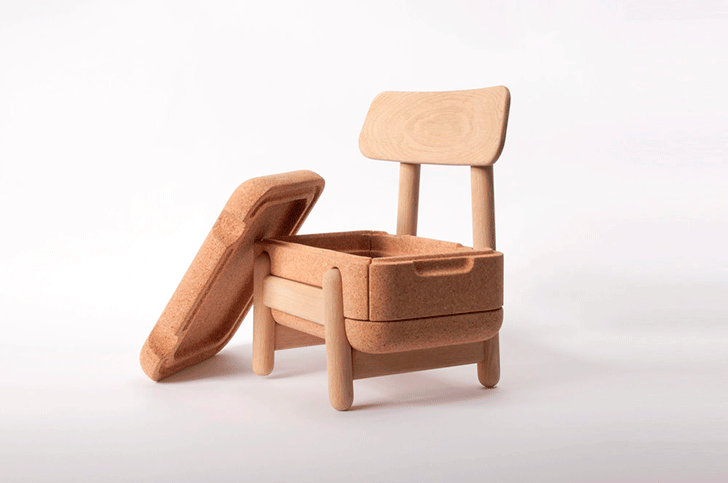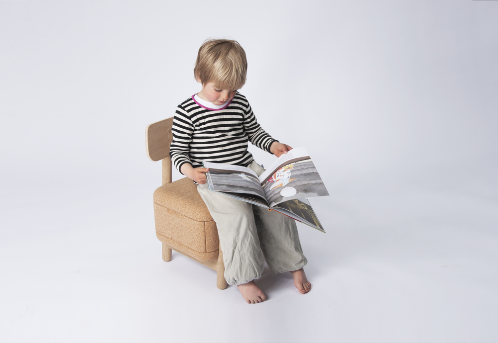 L’idée principale du projet est de redécouvrir un matériau traditionnel, le liège, en utilisant de nouvelles formes de production. En fait, OAK OAK est une réinterprétation de la boîte Settle, un ancien type de meubles connu par son compartiment de rangement sous le siège. Morten s’est rendu compte que le liège est un matériau parfait pour une chaise d’enfant: « il est chaud et facile à traiter de telle sorte que les bords souples empêchent les enfants de se faire du mal. » Cool non ?