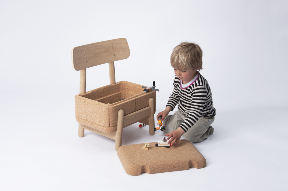 The Danish Designer Morten Husum Nielsen has created the amazing OAK OAK children’s chair with a storage space for toys and books. This playful and multifunctional piece of furniture has two parts, an oak frame and a cork seat. When you remove the lid from the seat you get access to the storage compartment.”There is room for a lot of Lego in the chair!” says Morten.