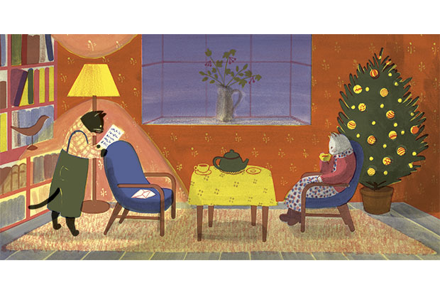 Une famille est au parc, un chat blanc passe entre les arbres. Le chat noir est resté à la maison et regarde par la fenêtre. Le soir tombe et nous allons assister à une étrange visite : dans la lumière intime et chaleureuse du salon, les deux chats, ayant pris des humains la taille et les vêtements, échangent des nouvelles et boivent du thé. Que dit cette lettre ? À quoi pense le chat blanc qui regarde par la fenêtre ? Dans ce livre sans texte, aux allures de conte de Noël, Junko Nakamura déploie tout son talent.