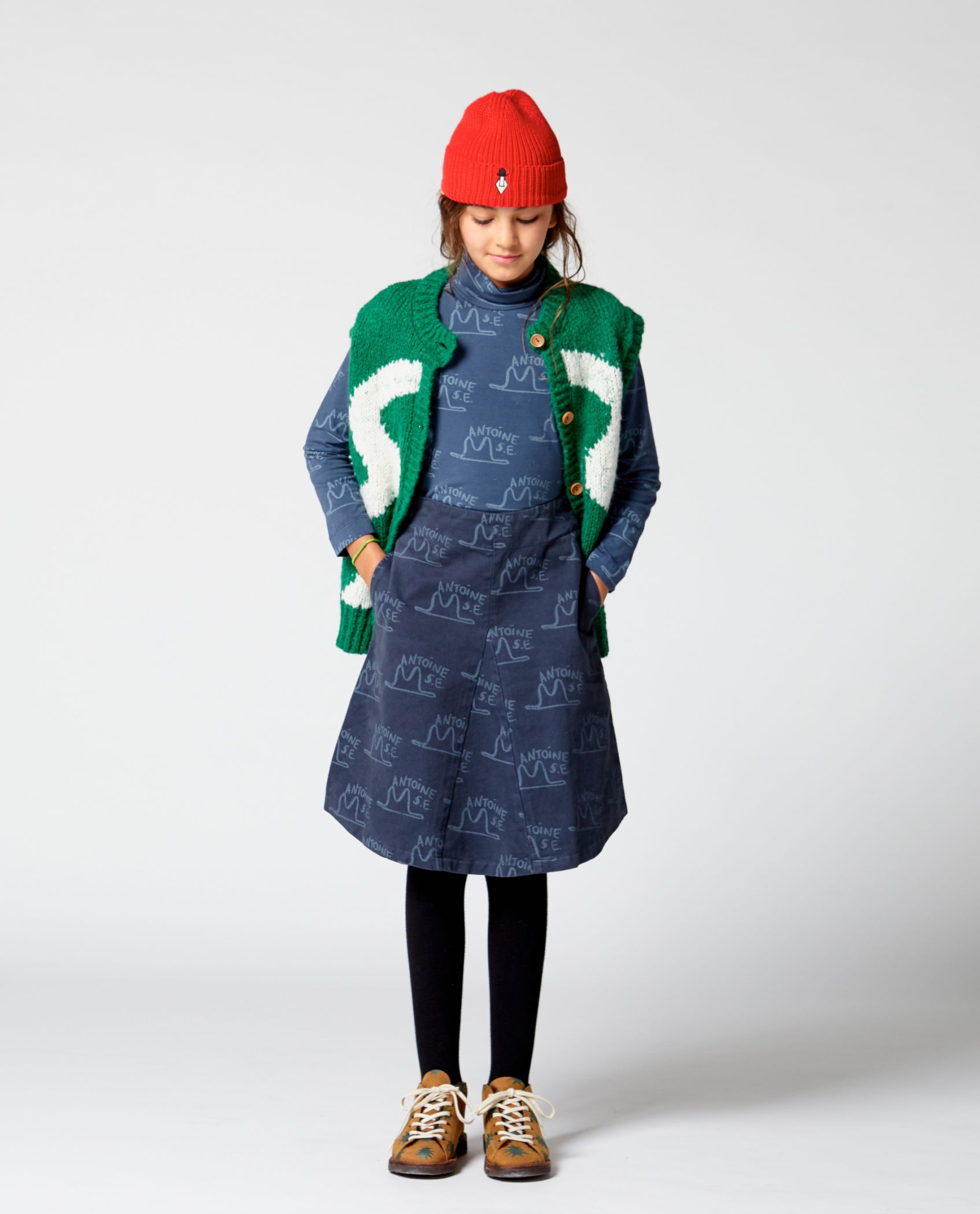 Red and Blue Bear Sweat 75€, jupe Red & Blue Dove 88€, chaussettes Pink worm 18€, hoodie 85€, pantalon 68€ , chaussettes 18€, robe S. Exupery 63€, gilet 95€, bonnet 40€, disponibles sur leur eshop.